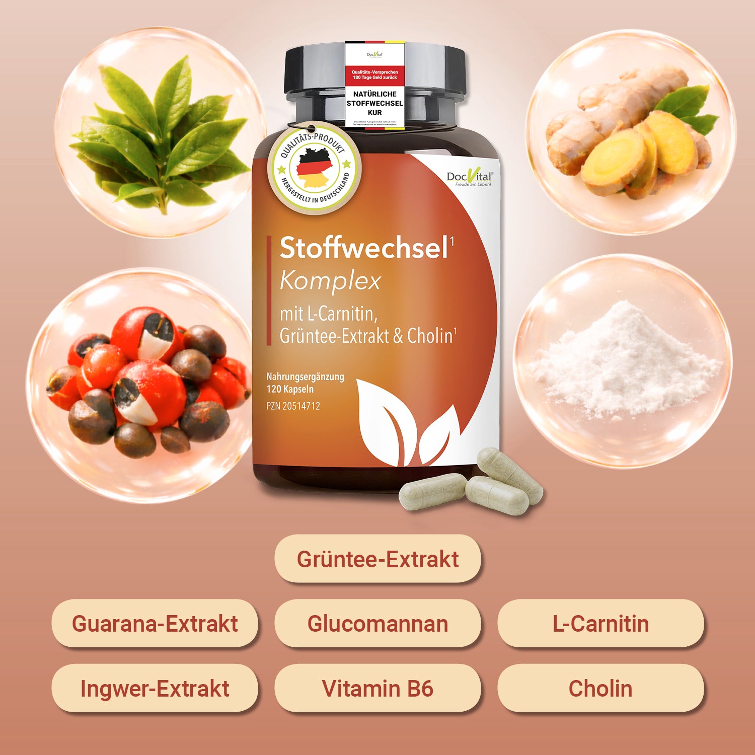 Der Stoffwechsel Komplex enthält natürliches Koffein aus Guarana und Grüntee. Die Wirkung wird in der Regel als moderat beschrieben. Personen mit Koffeinempfindlichkeit sollten die Einnahme individuell anpassen.